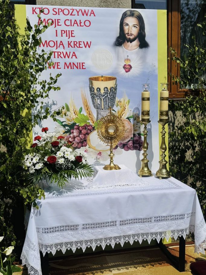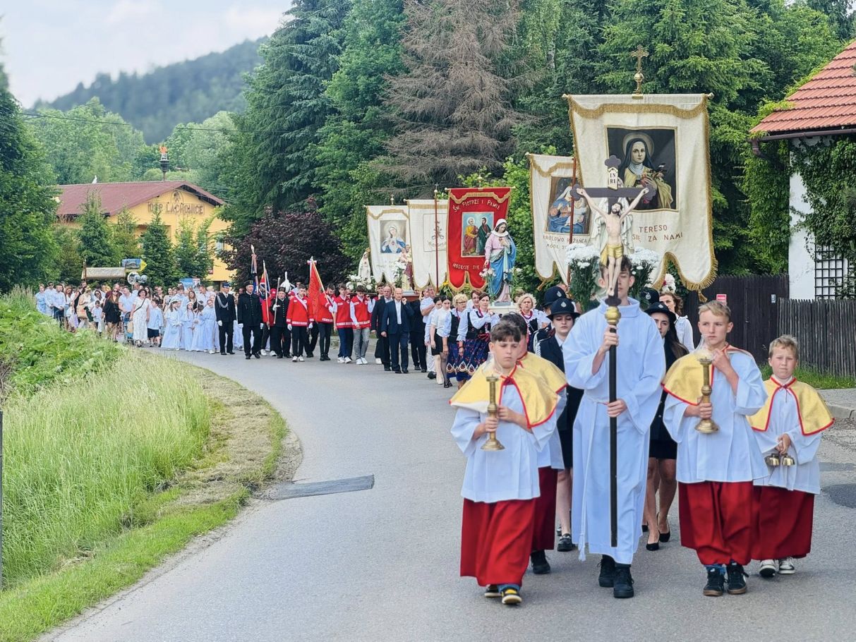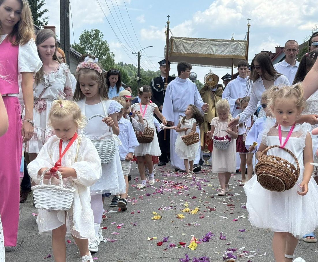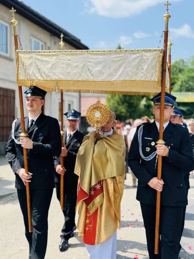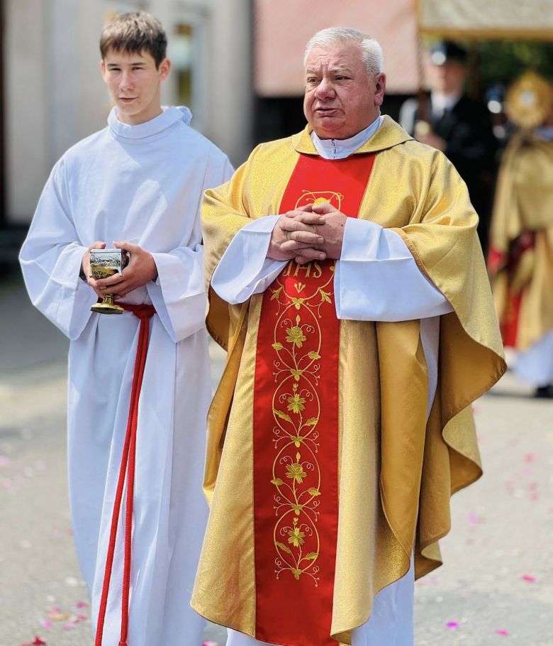 Jednak w tej drodze nigdy nie jesteśmy sami. Choć czasem wydaje nam się, że idziemy w ciszy, w samotności, w ciemności – On jest. Chrystus. Ten, który zna każde serce. Ten, który wie, co przeżywamy. Ten, który idzie razem z nami, nawet jeśli nie zawsze to dostrzegamy. Boże Ciało przypomina nam, że Bóg naprawdę jest blisko. Nie tylko w wielkich świątyniach, ale także na naszych wiejskich drogach, wśród domów, wśród ludzi, w sercach tych, którzy Go przyjmują. Idąc w procesji, modląc się, śpiewając, klęcząc – dajemy świadectwo wiary, że On jest z nami. Że Go kochamy. Że Go potrzebujemy. Niech ta uroczystość stanie się dla nas wszystkich umocnieniem. Niech przypomina, że nawet najdłuższa i najtrudniejsza pielgrzymka życia ma sens – bo prowadzi do spotkania z Bogiem. I że każdy nasz krok, nawet ten najbardziej niepozorny, może stać się krokiem ku świętości, jeśli idziemy razem z Chrystusem.