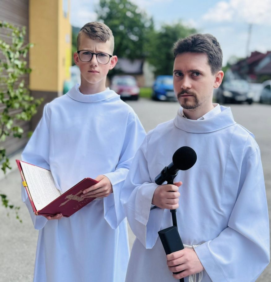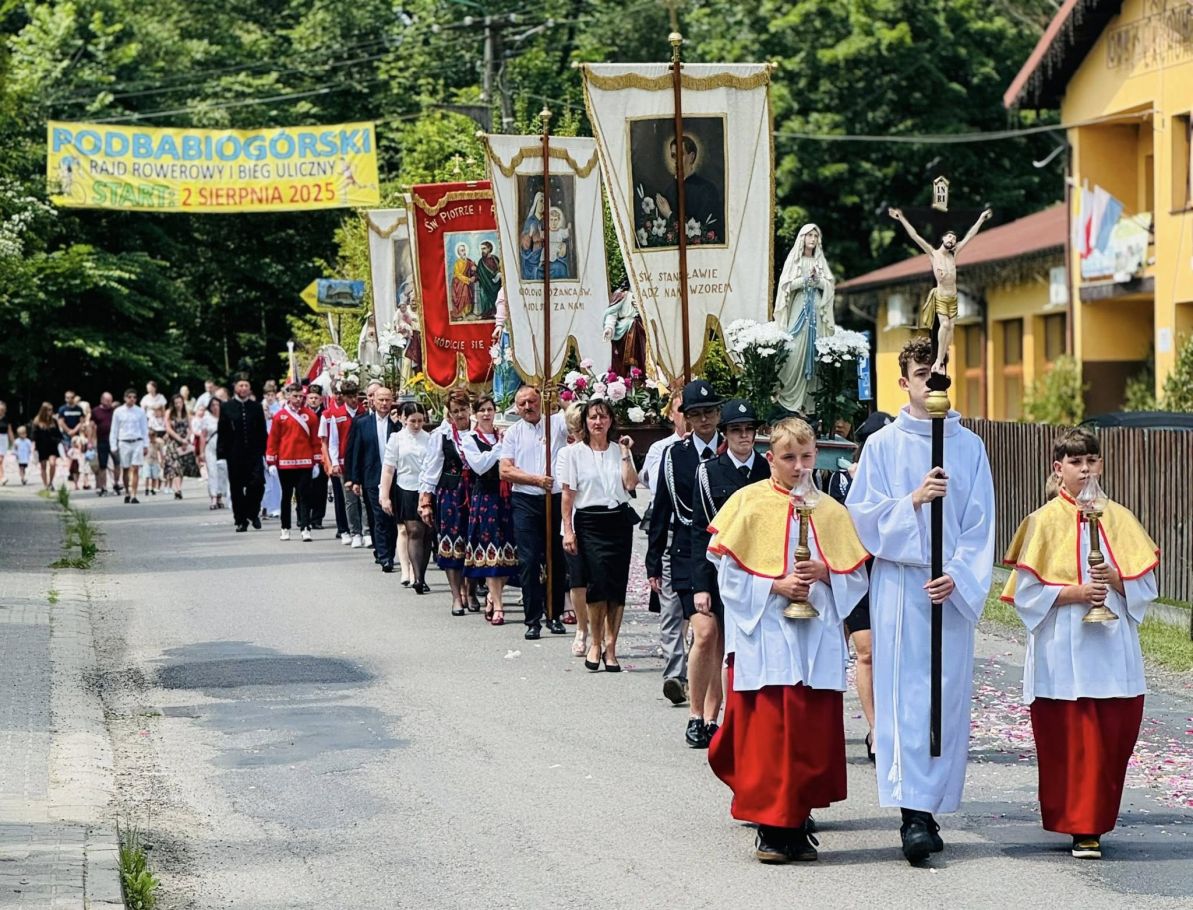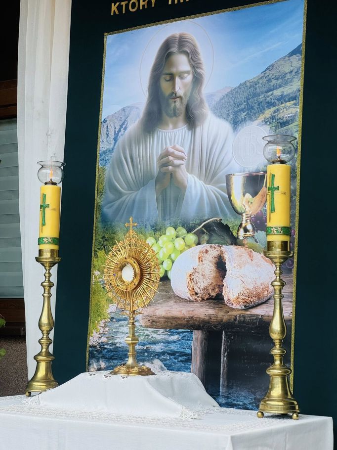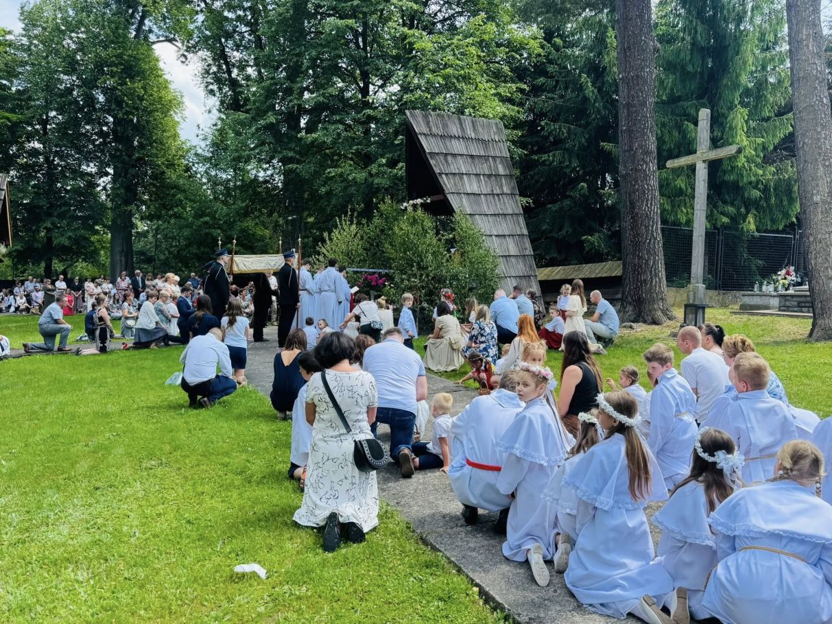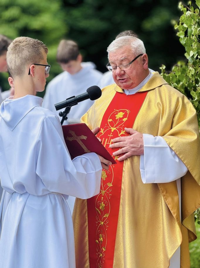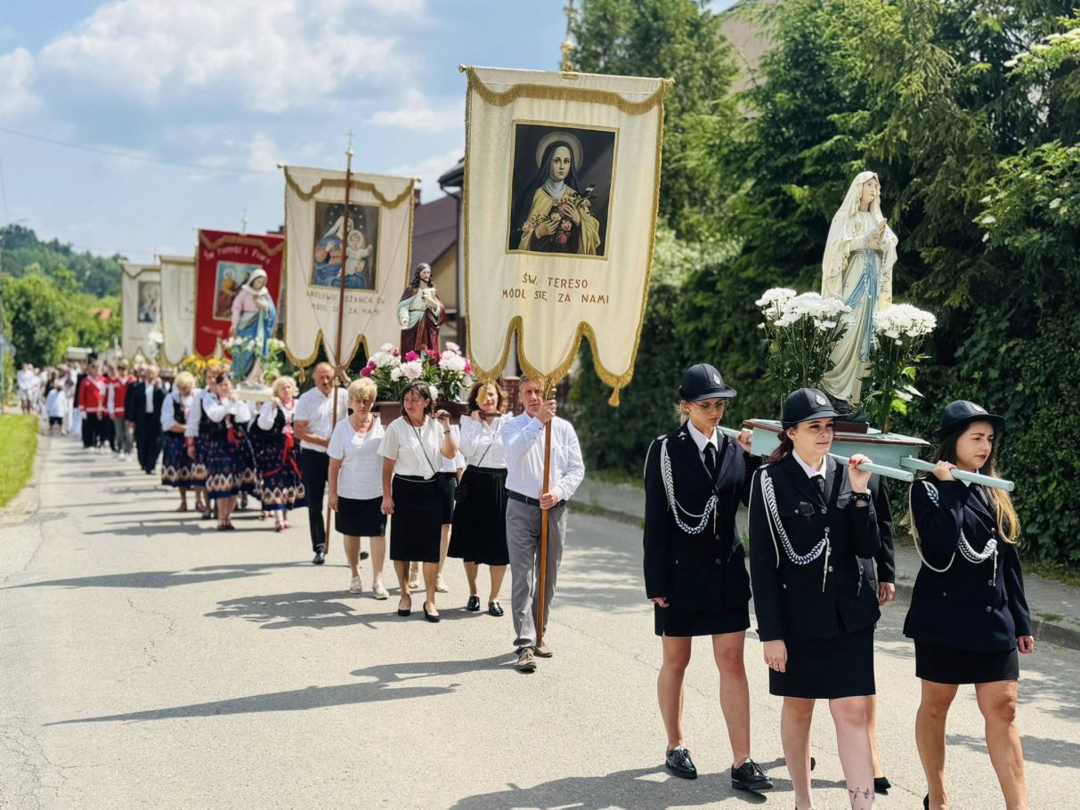 Jednak w tej drodze nigdy nie jesteśmy sami. Choć czasem wydaje nam się, że idziemy w ciszy, w samotności, w ciemności – On jest. Chrystus. Ten, który zna każde serce. Ten, który wie, co przeżywamy. Ten, który idzie razem z nami, nawet jeśli nie zawsze to dostrzegamy. Boże Ciało przypomina nam, że Bóg naprawdę jest blisko. Nie tylko w wielkich świątyniach, ale także na naszych wiejskich drogach, wśród domów, wśród ludzi, w sercach tych, którzy Go przyjmują. Idąc w procesji, modląc się, śpiewając, klęcząc – dajemy świadectwo wiary, że On jest z nami. Że Go kochamy. Że Go potrzebujemy. Niech ta uroczystość stanie się dla nas wszystkich umocnieniem. Niech przypomina, że nawet najdłuższa i najtrudniejsza pielgrzymka życia ma sens – bo prowadzi do spotkania z Bogiem. I że każdy nasz krok, nawet ten najbardziej niepozorny, może stać się krokiem ku świętości, jeśli idziemy razem z Chrystusem.