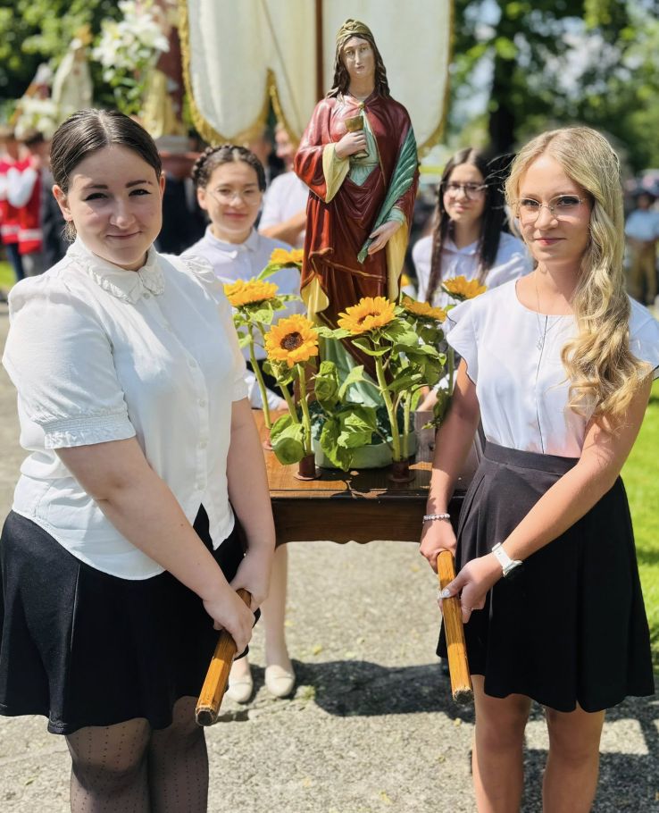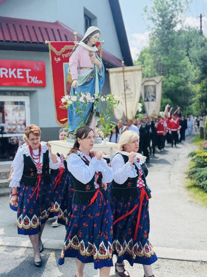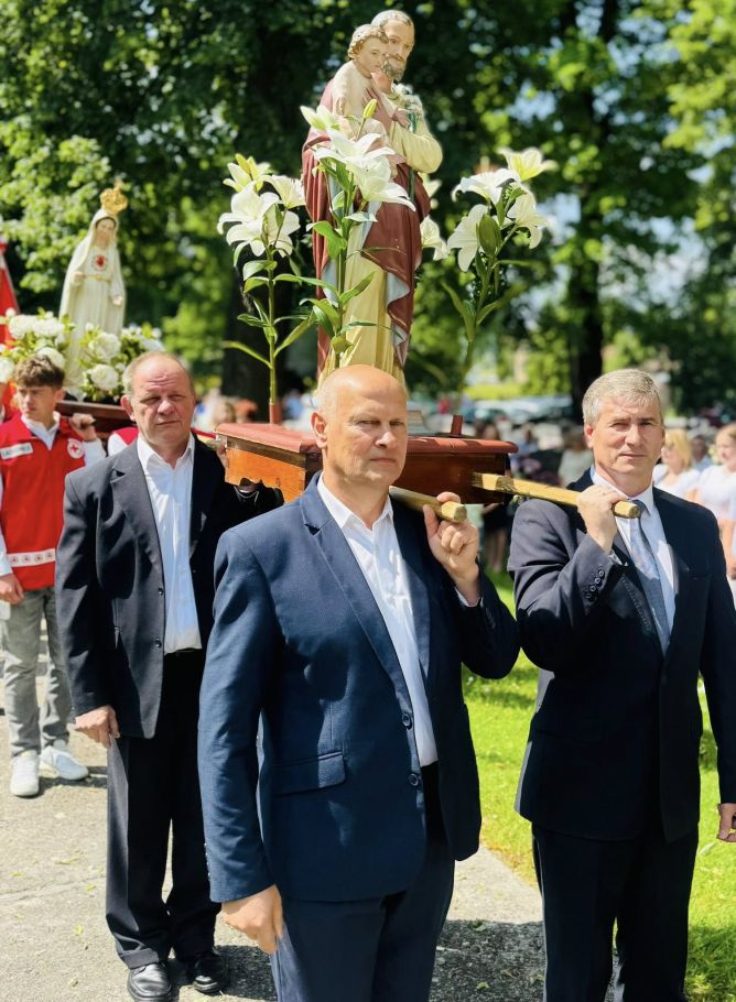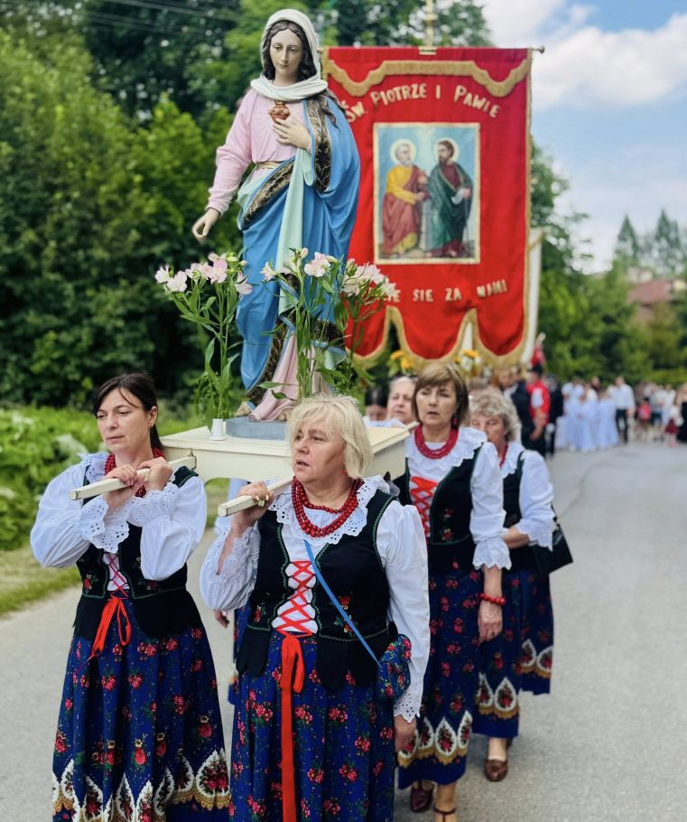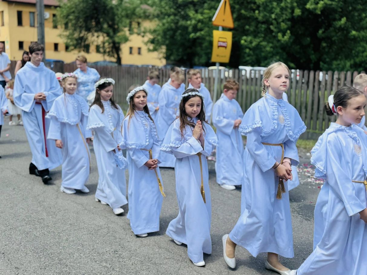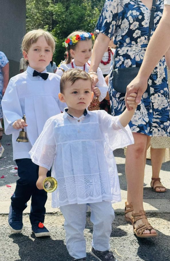 Jednak w tej drodze nigdy nie jesteśmy sami. Choć czasem wydaje nam się, że idziemy w ciszy, w samotności, w ciemności – On jest. Chrystus. Ten, który zna każde serce. Ten, który wie, co przeżywamy. Ten, który idzie razem z nami, nawet jeśli nie zawsze to dostrzegamy. Boże Ciało przypomina nam, że Bóg naprawdę jest blisko. Nie tylko w wielkich świątyniach, ale także na naszych wiejskich drogach, wśród domów, wśród ludzi, w sercach tych, którzy Go przyjmują. Idąc w procesji, modląc się, śpiewając, klęcząc – dajemy świadectwo wiary, że On jest z nami. Że Go kochamy. Że Go potrzebujemy. Niech ta uroczystość stanie się dla nas wszystkich umocnieniem. Niech przypomina, że nawet najdłuższa i najtrudniejsza pielgrzymka życia ma sens – bo prowadzi do spotkania z Bogiem. I że każdy nasz krok, nawet ten najbardziej niepozorny, może stać się krokiem ku świętości, jeśli idziemy razem z Chrystusem.