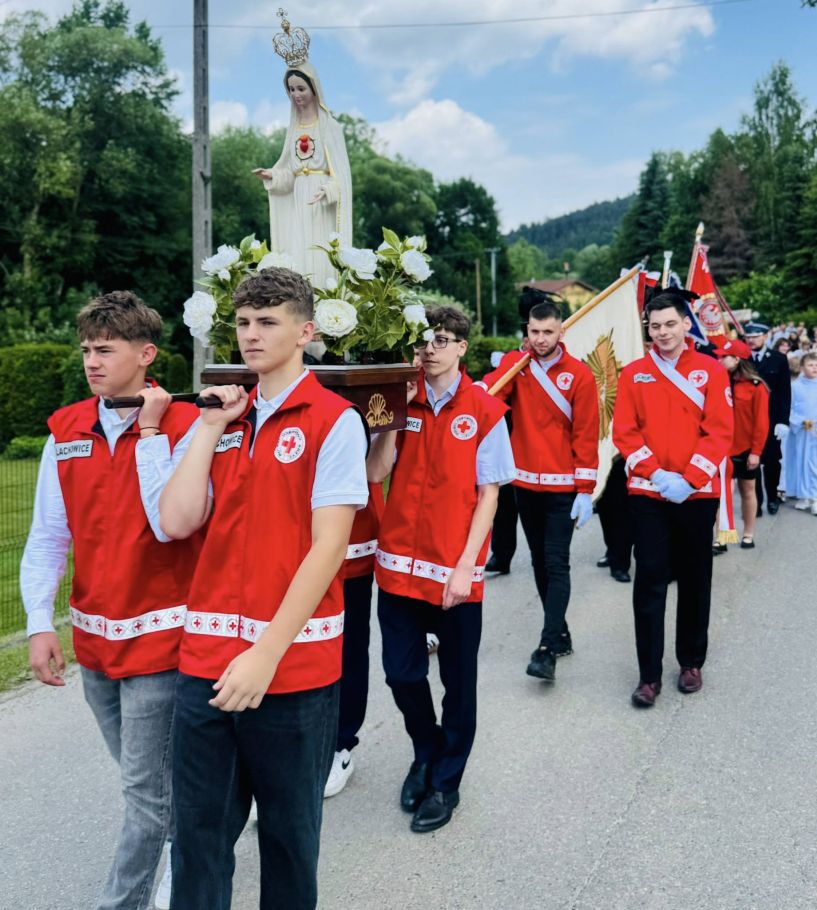 W Uroczystość Najświętszego Ciała i Krwi Chrystusa nasz Pan – żywy i prawdziwy – wyszedł na ulice Lachowic, by pielgrzymować pośród nas. Przeszedł przez naszą wioskę, ogrody i domy, by pobłogosławić, by napełnić nasze serca pokojem, nadzieją i miłością. Jezus – obecny w Najświętszym Sakramencie – nie pozostał zamknięty w świątyni. On wyszedł do swoich dzieci, by być blisko ich codzienności. My zaś, mieszkańcy tej ziemi, jesteśmy jak pielgrzymi. Każdy z nas przemierza drogę swojego życia – czasem prostą i lekką, innym razem stromą, kamienistą, trudną do przejścia. Kroczymy przez codzienność, dzień po dniu, zmagając się z troskami, przeżywając radości, śmiejąc się i płacząc, pracując i odpoczywając. Wszystko to jest częścią naszej życiowej wędrówki – pielgrzymki ku wieczności.