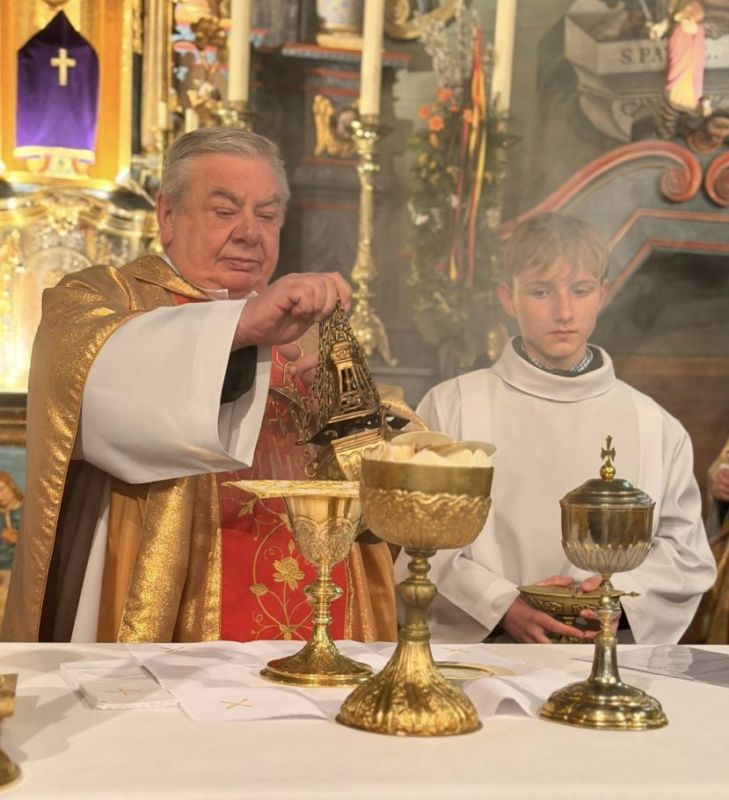 Rozpoczęliśmy dziś czas świętych trzech dni, zwanych z języka łacińskiego Triduum Paschalnym. Dzisiejszego ranka w kościołach katedralnych była sprawowana przez księży biskupów uroczysta Msza święta Krzyżma świętego. Został poświęcony olej, który jest używany podczas liturgii, w czasie której udziela się sakramentów: chrztu, bierzmowania, namaszczenia chorych oraz kapłaństwa. My zaś teraz, w ten uroczysty wieczór gromadzimy się w naszym parafialnym kościele, aby podziękować Chrystusowi za dar sakramentu Eucharystii i Kapłaństwa. Wszyscy modlimy się o uświęcenie wszystkich wierzących. Ta szczególna tajemnica jest w każdym wierzącym, gdyż każdy z nas pragnie być świętym. Szczególną cząstkę tej świętości otrzymujemy podczas wspólnej modlitwy na Wieczerzy Pańskiej.