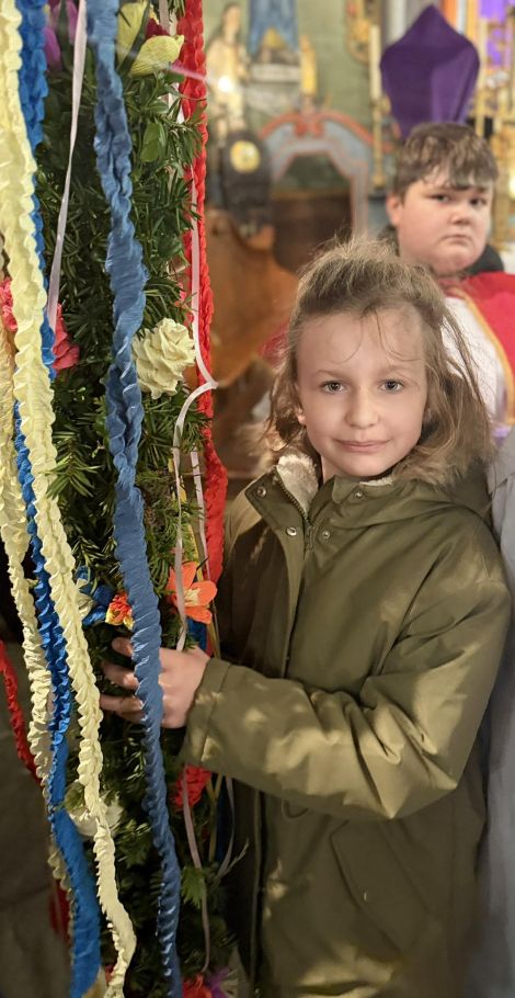 Podnieście kwiaty i bazie do góry. Wymachujmy nimi na cześć Pana Jezusa i z radością śpiewajmy Jezusowi: „Chrystus Wodzem, Chrystus Królem, Chrystus, Chrystus Władcą nam!”. Następnie śpiewajmy razem: „Śpiewaj: hosanna, śpiewaj: hosanna! Śpiewaj Panu, który Królem jest!”. Z palmami i kwiatami wrócimy do domu, by z całą rodziną zebrać się przy stole. Przed posiłkiem wyśpiewajmy radość z palmami i kwiatami, że Jezus jest w naszym domu, że jest naszym Królem