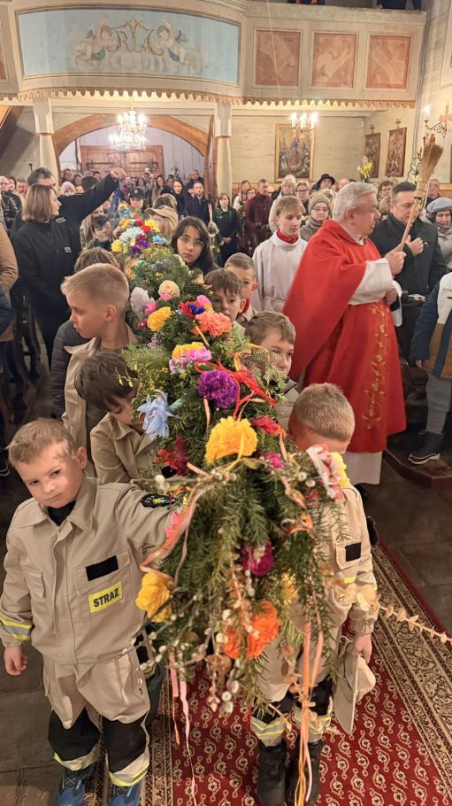 W Niedzielę Palmową przychodzimy do kościoła z kwiatami lub gałęziami polskich palm, czyli baziami. Ta niedziela nosi nazwę „Palmowa” dlatego, że palmami, kwiatami, gałęziami witamy Pana Jezusa. Kwiaty, palmy i gałęzie mówią Panu Jezusowi to samo, co mówiły wtedy, kiedy witały Go rodziny izraelskie podczas wjazdu do Jerozolimy. Te kwiaty, palmy mówią za nas: „Panie Jezu, cieszymy się, że spotykasz się z nami. Kochamy Cię, ponieważ i Ty nas kochasz. Jesteśmy z Tobą! Ty jesteś naszym Królem!”.